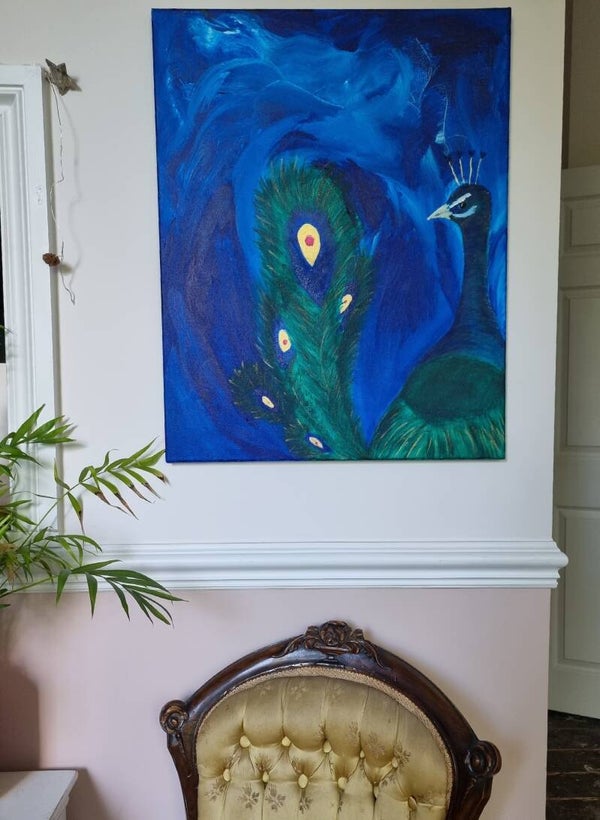 On my 30th birthday, I treated myself to a lifesize sparkly peacock. Like a polystyrene taxidermi...with sequins ✨😉 She is called Lizzie, and is a she even though she is for sure a beautiful Peacock and not a hen!